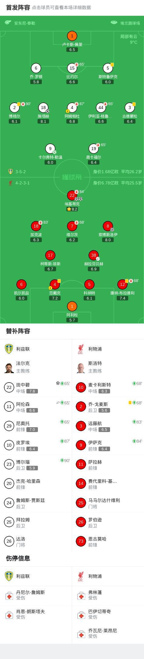 剑南春|利物浦客场3-3利兹联,田中碧补时绝平,埃基蒂克双响