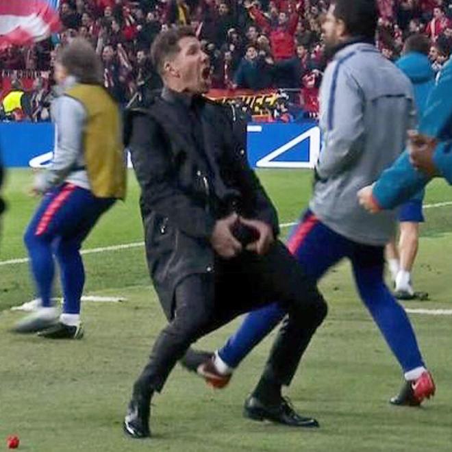 要我说,足球本就是一项充满荷尔蒙气息的运动,当球员和教练员心率飙升,做出这样的动作可并非孤例。2019年欧冠赛场,西蒙尼在对阵尤文的欧冠首回合里霸气庆祝,完全是匪帅的真情流露。