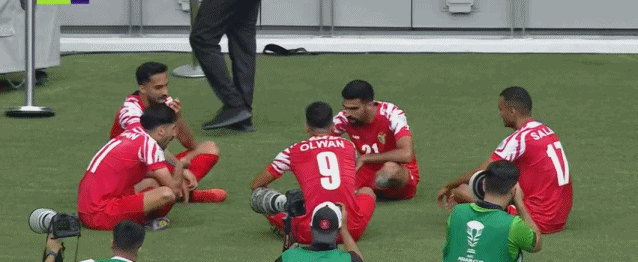 行为艺术可是门学问,不是想来就能来的。2024年亚洲杯上,约旦球员庆祝时一家人整整齐齐地享用美餐,伊拉克前锋侯赛因也想效仿,结果他成为了美餐本身,被红牌罚下。