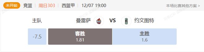 本场比赛,尤文图特的对手,是西篮第13的曼雷萨,曼雷萨上一场比赛大比分不敌马拉加,相比于各项赛事三连胜的尤文图特,曼雷萨近期状态显然是逊色不少,此番对决,看似尤文图特优势在握,不过,值得留意的是,在两队近七次交锋中,曼雷萨全部取胜,对于尤文图特可以说是非常克制,球队快速,重投射的特点,让拥有高大内线的尤文图特疲于应对,本赛季,曼雷萨依旧是这样的球风,这也会给尤文图特带来很多的麻烦,结合让步分数以及曼雷萨的心理优势,个人看好曼雷萨本场可以免遭惨败。