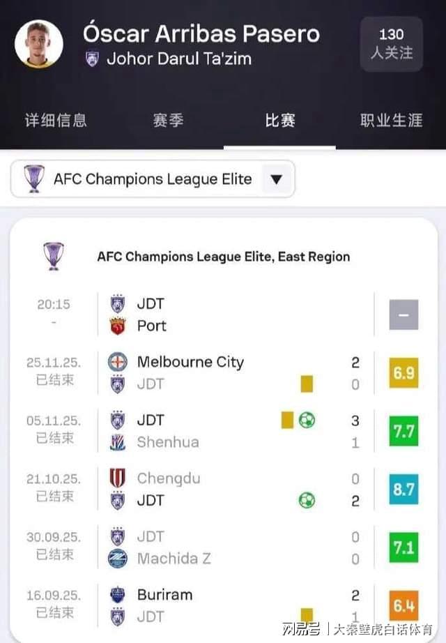 从亚足联的官方网站上可以看到,柔佛队的阿里巴斯在第6轮比赛之前已经身背3张黄牌,分别在第1轮、第4轮和第5轮。