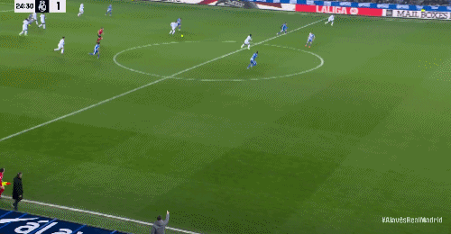 第68分钟,阿拉维斯这边也是中后场快速反击,布兰科一记精准的超远距离过顶长传撕破皇马防线,刚刚替补登场不到1分钟的维森特高速插上将球卸下,顺势杀入禁区获得单刀良机,维森特调整好脚步大力兜射,皮球应声入网,阿拉维斯1:1扳平比分。第75分钟,皇马获得禁区弧顶左侧位置很好的任意球机会,罗德里戈操刀主罚没有打好,大力兜射直接打了飞机。1分钟后,皇马快速反击转移到左侧,维尼修斯高速插上接球,头球往前一顶人球分过强行过掉回防的奥托,维尼修斯突入禁区后横传做饼,后排插上拍马赶到的罗德里戈小禁区前沿超近距离单刀直接推射得手,皇马2:1再次取得领先。之后皇马后防没有再坑,2:1笑到最后止住颓势。
