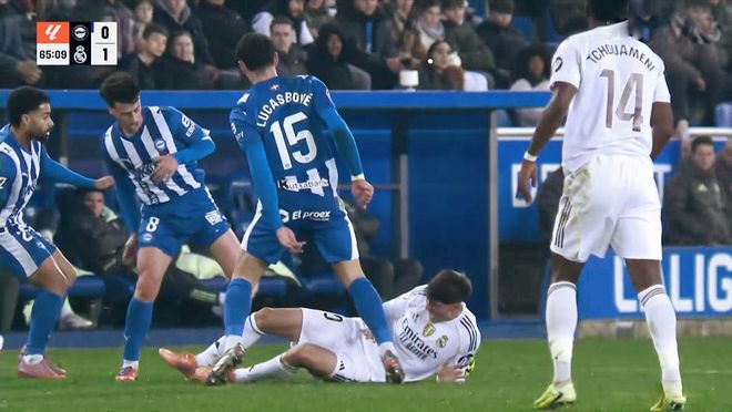 下半场回来,阿拉维斯仍旧占据进攻端的主动权,皇马以防守反击为主。姆巴佩、维尼修斯连续的射门,被门将奋力化解。60分钟后,双方不断走马换将,阿拉维斯一口气连续换掉三名进攻球员,继续在前场保持充足的拼抢活力。
